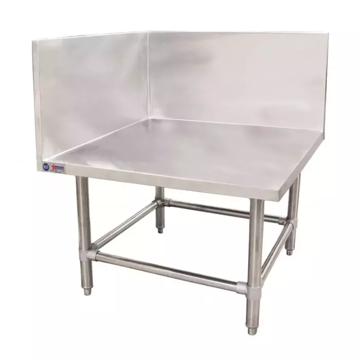 This 31” x 31" kitchen equipment stand is perfect for holding heavy countertop kitchen equipment such as mixers, grinders, slicers, griddles, and burners. Made of durable 18-gauge 430 stainless steel and 18-gauge galvanized steel undershelf, it's built to last. The galvanized legs and socket, as well as the adjustable plastic bullet feet, ensure stability and levelness on any surface.