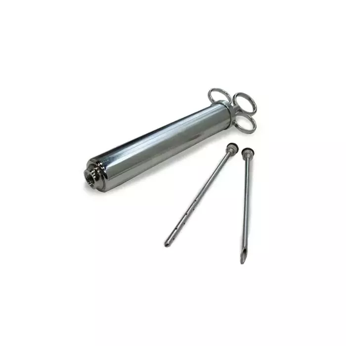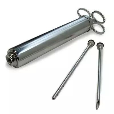Inject seasonings, and marinades into large portions of meat. Comes with 2 needles. Nickel plated brass.