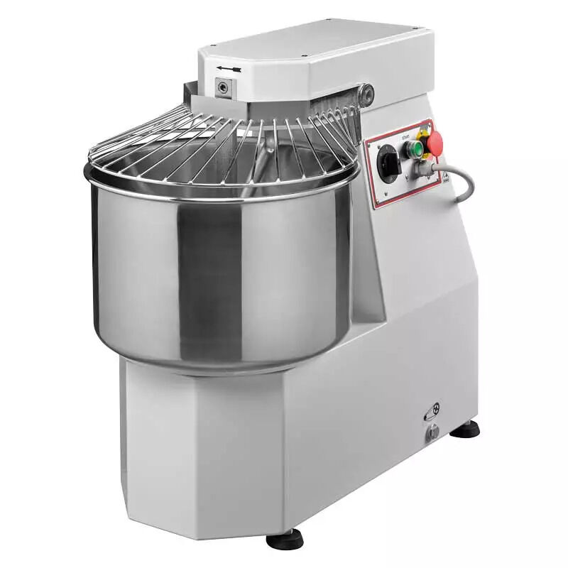 The Nella 40 lb Spiral Dough Mixer Heavy Duty, Model MX-IT-0020, is a spiral mixer with bowl made of stainless steel. Features fixed stainless steel high strength spiral as well as a safety device which stops the machine when the bowl cover is lifted. This machine will greatly reduce the usual mixing time of traditional machines. Ideal for bakeries and pizza shops, it performs well with both hard and soft dough.