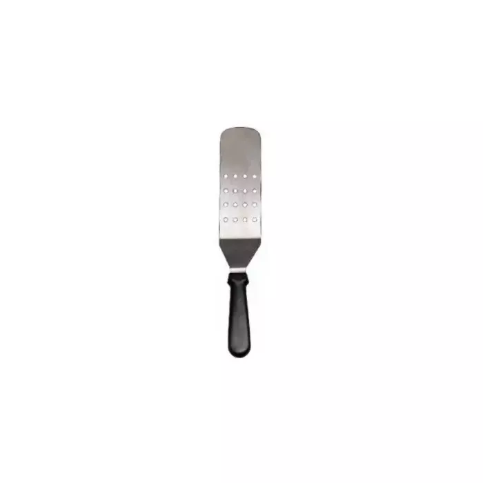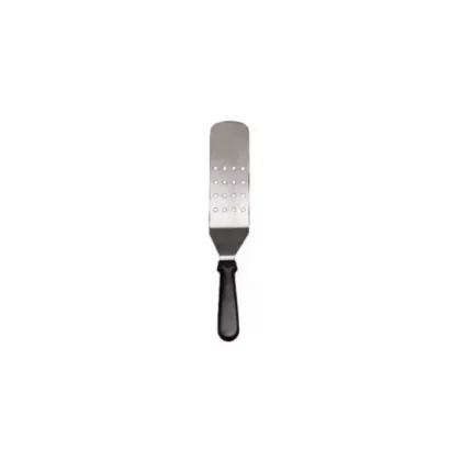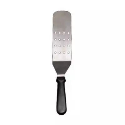 Made of satin stainless steel. Nella kitchen turners are perfect for preparing meat and vegetables on the grill. Black handle. Flexible turner with perforated blade - 8 1/4” x 2 7/8”.