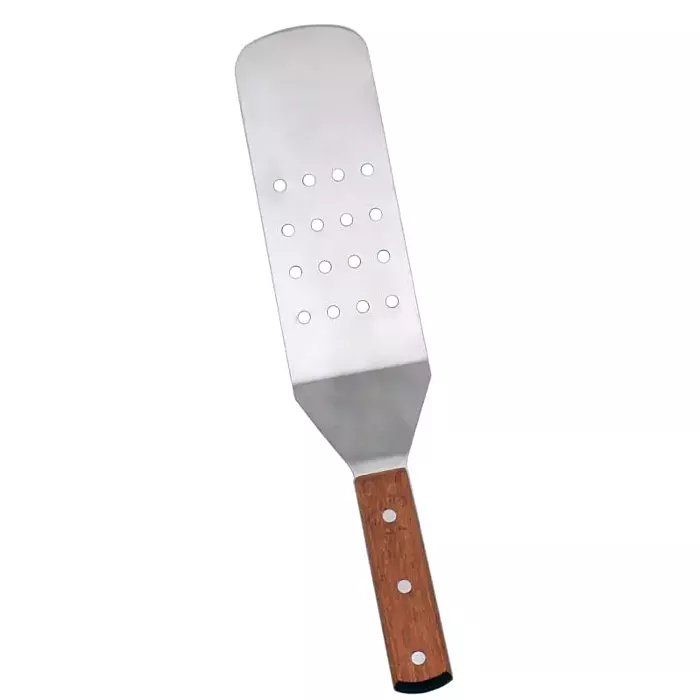Made of satin stainless steel. Our kitchen turners are perfect for preparing meat and vegetables on the grill. Available with wooden and plastic handles.