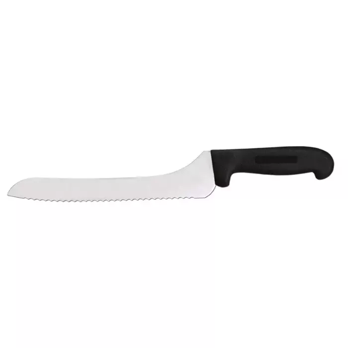 9" Off-Set, Wave Edge. Curved, off-set blade. Black Greban handle.