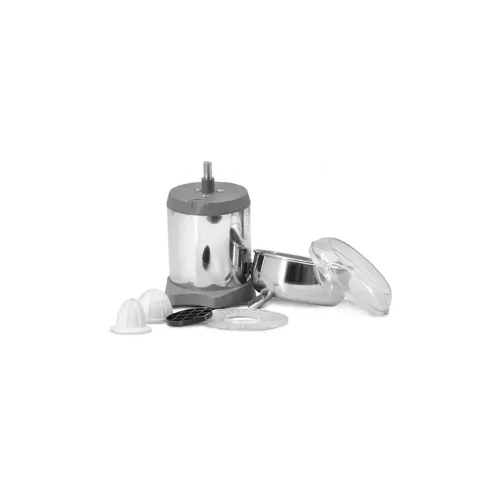 The JE-IT-0900 is made of light alloy and stainless steel. Comes with a stainless steel removable bowl and two interchangeable cones - one for large and one for small citrus. Designed for continuous operation. Equipped with a fan for external ventilation and a thermal overload protection. Easy to clean and operate.