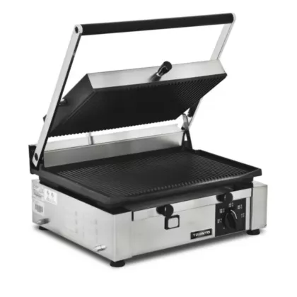 The Nella Elite Series 10" x 14" Single Panini Grill with Grooved Surface is the perfect grill to serve your favorite sandwiches anytime. This Sandwich Grill has a stainless steel body with cast iron grilling surfaces for easy cleaning. Ideal for sandwiches, burger, quesadillas, panini, foccacia, and pita sandwiches.
