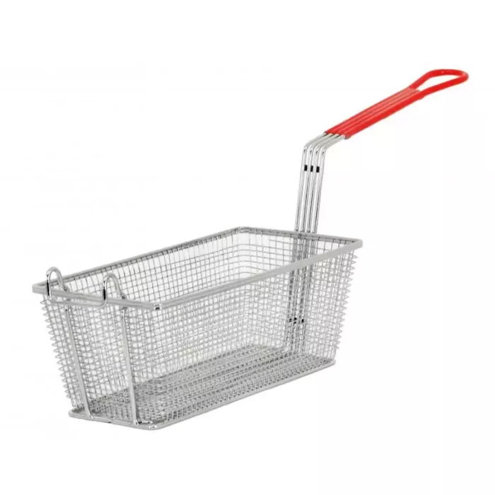 FRYER BASKET 12.875" X 6.5" X 5.375" RED HANDLE NICKEL-PLATED IRON - Nella 80556