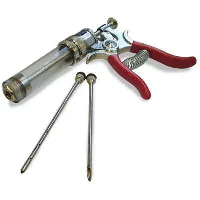 Pistol Grip Style Flavour/Marinade Injector with 50ml clear polycarbonate barrel and dial settings for precise amounts.