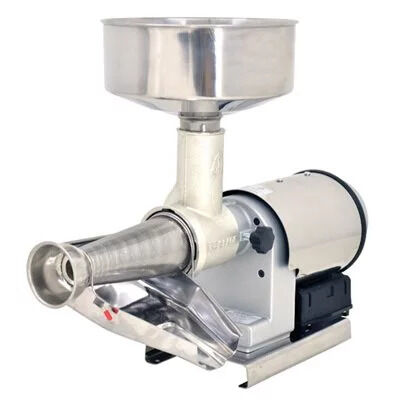 This model is perfect for medium to large production. Features tinned cast iron body, auger, stainless steel hopper, collector, base, splash guard and filter. It is easy to disassemble for quick and easy cleaning. Conforms to CSA standards