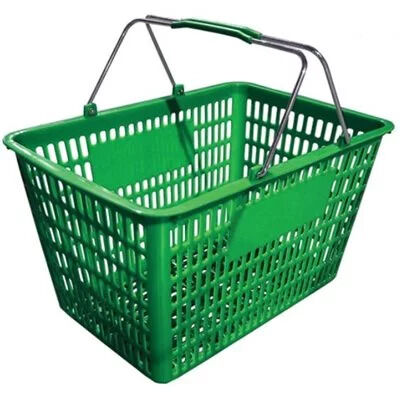 Provide your customers with optimal shopping convenience with a selection of shopping basket! Made of durable, easy to clean plastic with reinforced ribbing for added support, this basket is built to last through the multiple daily uses, the holes in the basket prevent any spill or water build up.