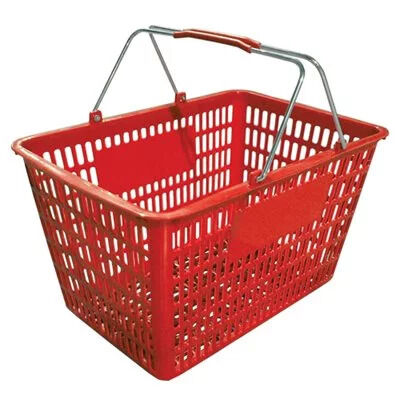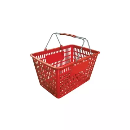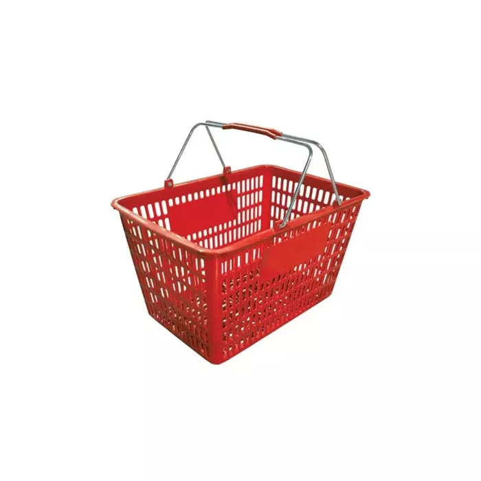 Provide your customers with optimal shopping convenience with a selection of shopping basket! Made of durable, easy to clean plastic with reinforced ribbing for added support, this basket is built to last through the multiple daily uses, the holes in the basket prevent any spill or water build up. This basket features two steel plated handles that offer even more sturdiness and support. Plus, each handle has a grip for your customers’ comfort while holding the shopping basket. These baskets also nest together for easy, space-efficient storage.