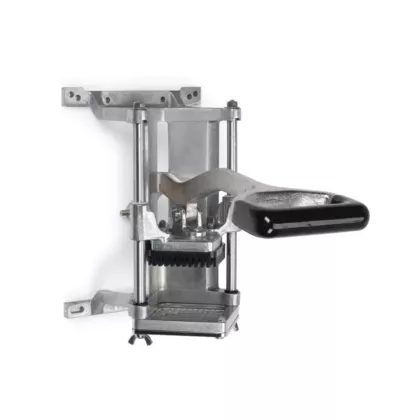 Easy FryKutter uses an exclusive short throw handle and superior engineering to improve leverage for smooth, easy cutting or wedging in just one stroke. Works with natural body motion to eliminate awkward stretching and reduce operator fatigue. Built to last under the toughest day-to-day conditions. Slide-in, slide-out wall bracket fits the same mounting holes as most other machines.