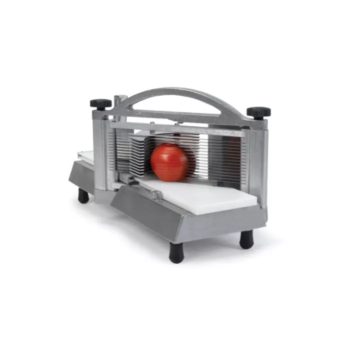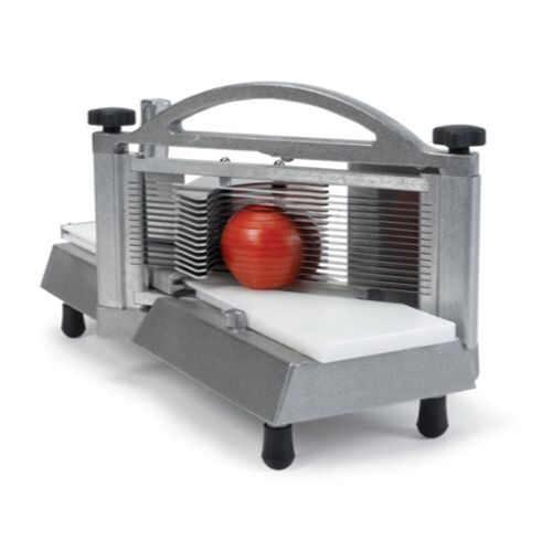 Compact, efficient, easy to use and even easier to maintain, the new Easy Tomato Slicer 2 with its pretensioned cartridge blade assembly is more convenient than ever. The newly designed blade set stays properly aligned and tightened without the needs to adjust it. The Easy Tomato Slicer 2 has an ergonomic handle, polyethylene slide board, hand guards, self-lubricating track, rubber feet, and a table stop like its predecessor, the Easy Tomato Slicer, a staple in food service kitchens.