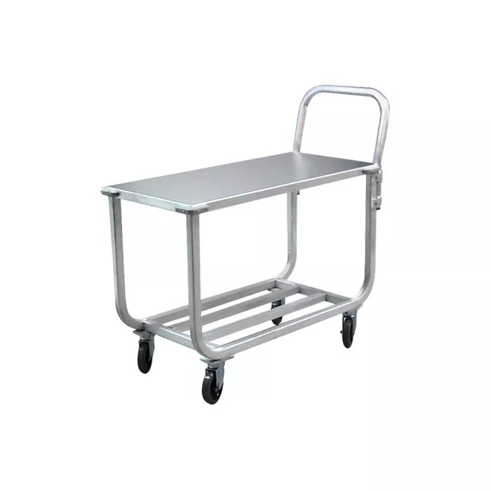 - Double-deck cart moves product at a convenient, workable height from the floor