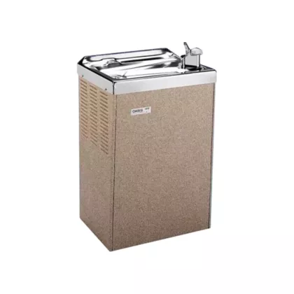 - Oasis® water coolers are manufactured with a heavy gauge steel frame which provides durable and quiet operation. They feature a 5-year limited warranty on the sealed refrigeration system and most component parts. All waterways are constructed of lead free materials and HFC 134A is used as a refrigerant. No CFCs are used. All units are standard tan sandstone finish. Drinking water temperature is 50°F/10°C. Certified for sale in Canada by an accredited certification body. ; ; Shipped with complete instructions and wall mounting brackets. Should be installed with the nozzle 36 inches from the floor.