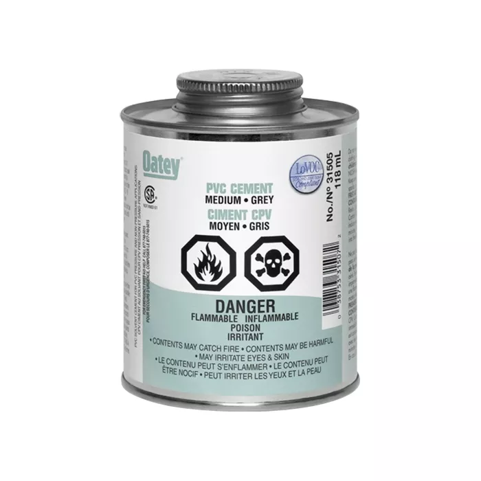 - Medium-bodied gray cement for use on all schedules and classes of PVC pipe and fittings up to 6" diameter with interference fit