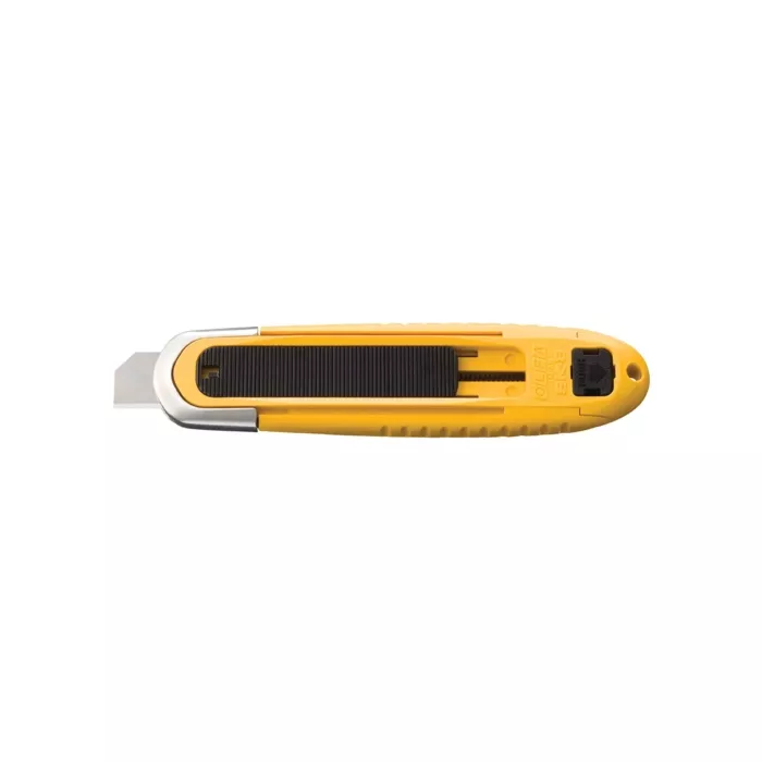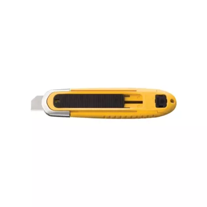 - Spring-activated blade automatically retracts when it loses contact with cutting surface, even if blade slide is engaged