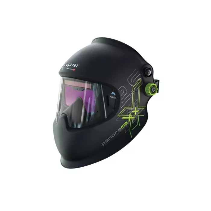 - Curved helmet design deflects smoke and debris, optimized for overhead welding
