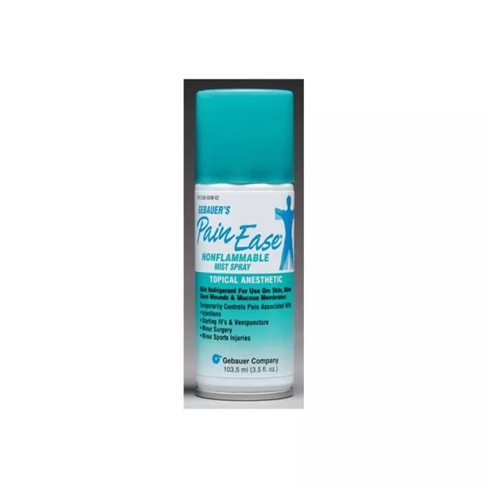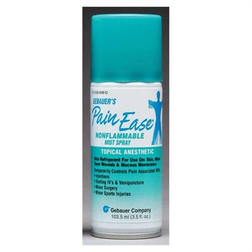 Gebauer's Pain Ease® is a topical anesthetic skin refrigerant (vapocoolant) that begins working in just 4-10 seconds. Pain Ease is FDA-cleared to temporarily control the pain associated with needle procedures and minor surgical procedures.