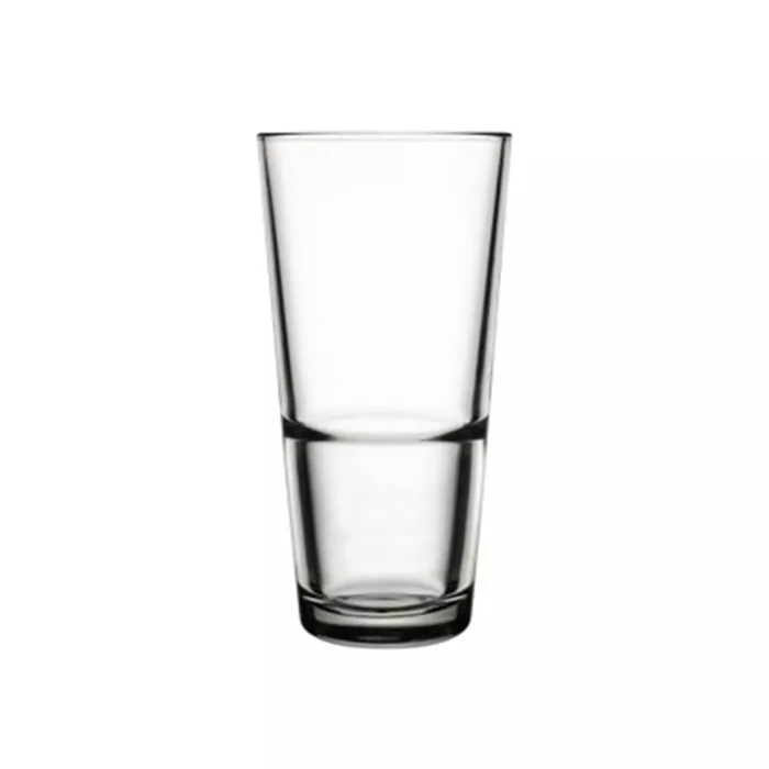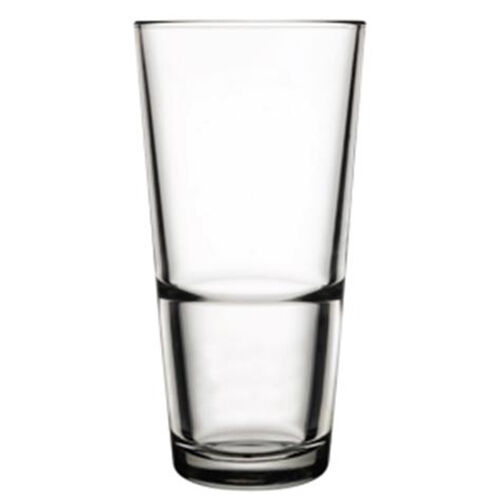Constructed of fully tempered glass, the Pasabahce Grande-Stack Hi-Ball Glass is a stackable piece of glassware for space-efficient storage. It is the perfect addition to any bar, restaurant or banquet.