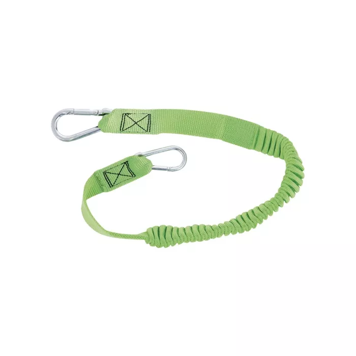- The standard lanyard features two small carabiners designed to connect to the clamp and the other end to operator