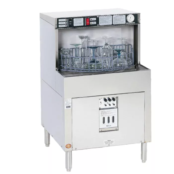Dimensions & Power: 24″ W × 24‑3/4″ D × 39‑40 1/8″ H; 1 HP motor, 115 V/16 A; requires hot water (120 °F minimum)