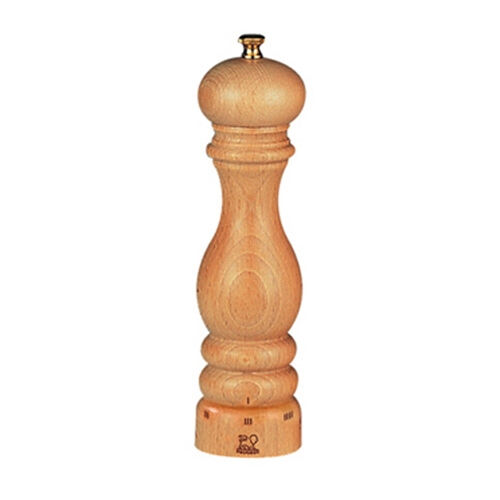 PARIS U'SELECT has a patented grind selection system, with several pre-set grind adjustments. Peugeot's Pepper Grinding Mechanism is a two stage burr-style system - first it cracks then grinds peppercorns - ensuring the most flavor and aroma is released from the pepper. The grinding mechanism is constructed of case-hardened steel - virtually indestructable. The u’Select grind adjustment system is guaranteed for 5 years, with a lifetime guarantee on grinding mechanism. Made in France. Natural wood color. Height: 9".