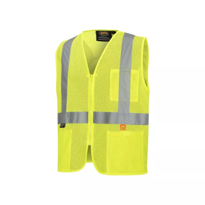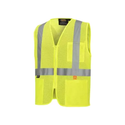 - Made from FR-treated, polyester mesh material, this Pioneer Hi-Viz Safety Vest is breathable and lightweight.