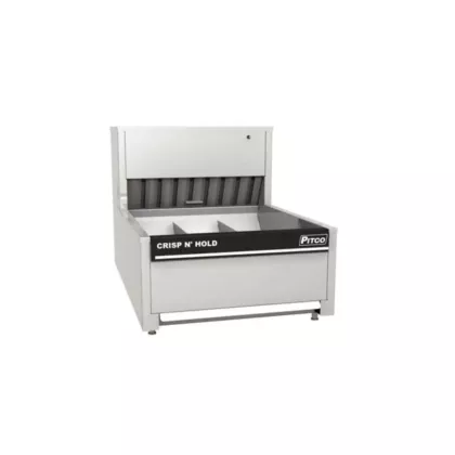 The Crisp N’ Hold Food Station extends the holding time of fried food by maintaining a constant flow of heated air in and around the product. The air is filtered, re-circulated and incrementally heated to control the accumulation of moisture, conserve energy and keep food warm and crisp.