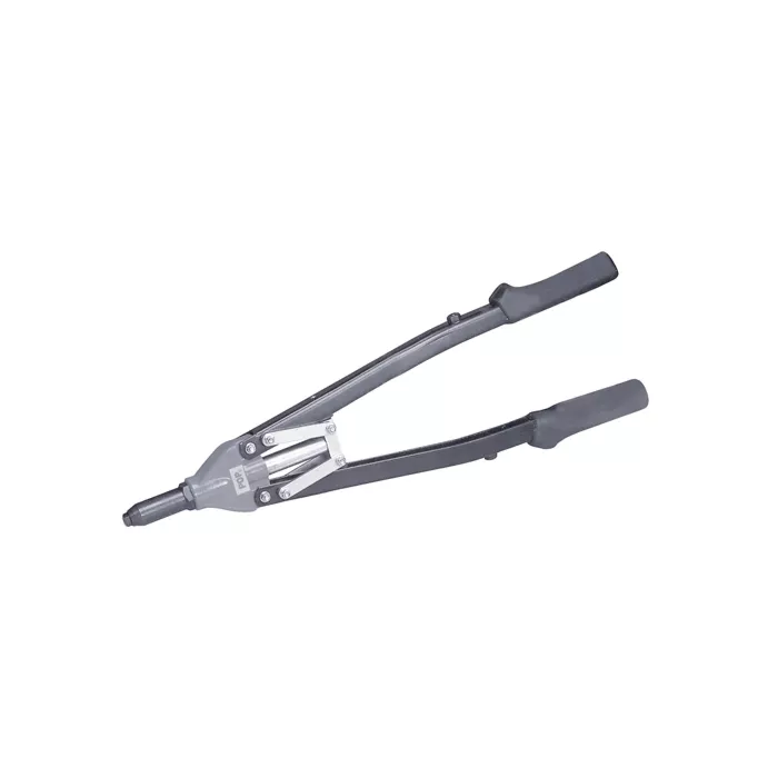 - LONG HANDLE RIVET TOOLS; Ergonomically designed hand grips provide a more comfortable grip for riveting. The longer handles give more leverage for easier operation even on tough 1/4" on T-Rivets. Hardened tool steel jaws give it durability and long life. Tool comes with nosepieces to set 3/16", 1/4" rivets and T-Rivets. Tool will set rivets ranging from 3/32" overall diameter in all material combinations up to and including 1/4" overall diameter for all stainless steel rivet.
