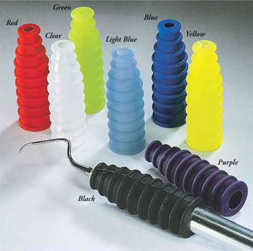 Invented by a hygienist, Chub-Eze Instrument Grips fit handles up to 5⁄16" diameter. Silicone. Heat sterilizable to 600°F. 1-1⁄2"L x 1⁄2" diameter. 20 per pack. Specify color or assortment.