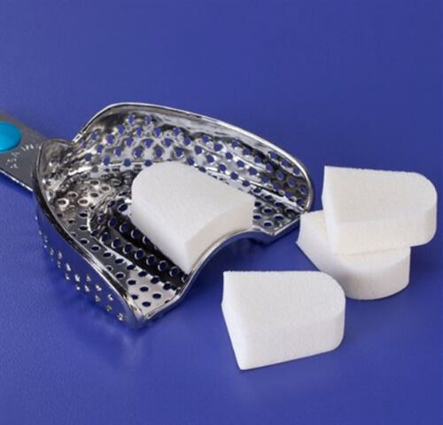Material Saver InsertsImpression Material Saver Foam Inserts reduce the amount of VPS material used in upper impressions by up to 25%, saving you as much as $3 per impression!Made of soft memory foam with peel-and-stick backing, inserts adhere to the palatal portion of a maxillary impression tray before loading with material to reduce the volume of impression material required. They increase patient comfort and impression quality by helping to reduce gagging. Inserts fit all full-arch maxillary trays. Made of FDA-approved materials. 50 per pack.Available in size small or large.