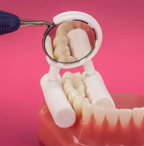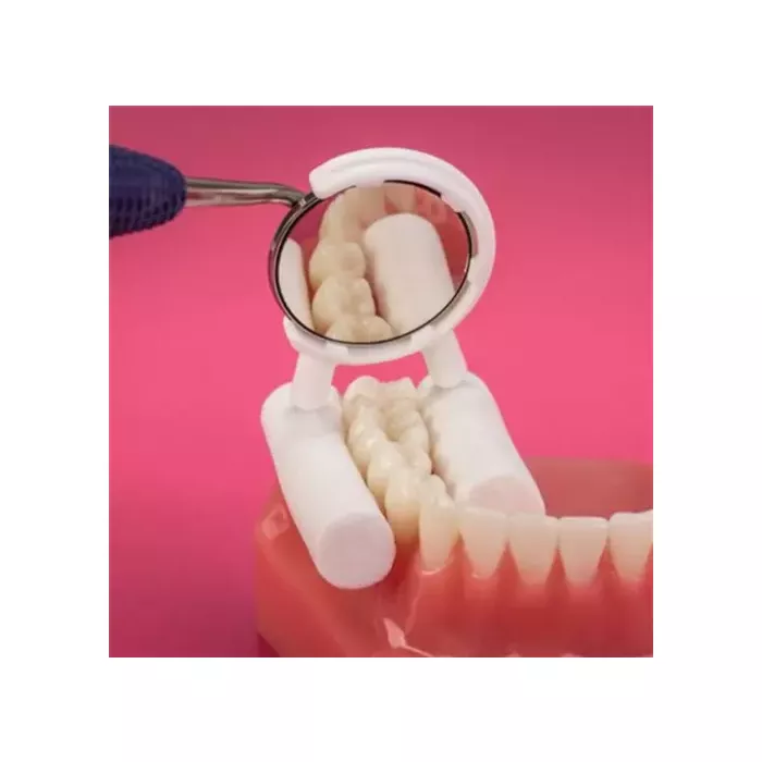 Mirror Cotton Holdersâ„¢ snap onto size 4 and size 5 mouth mirrors and feature twin tabs to keep both lingual and buccal cotton rolls in place during lower posterior procedures. Easily reversible for left or right quadrants. 100 single-use, disposable holders per bag. Not for use with Zirc mouth mirrors.