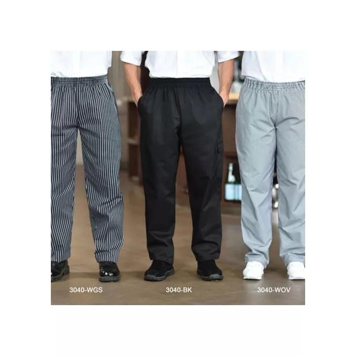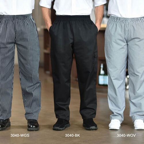 This style’s baggy cut with elastic waist and drawstring closure is specially tailored to offer greater comfort and style. Also features two back pockets and two side pockets for added convenience. Choose from a range of attractive colours and patterns that will compliment any kitchen theme.