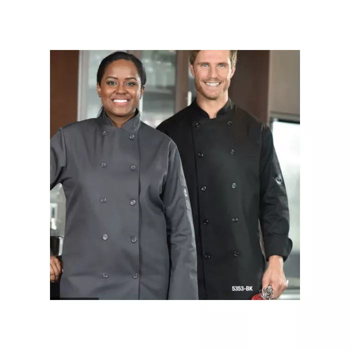 Black,double-breasted chef's jacket, large.