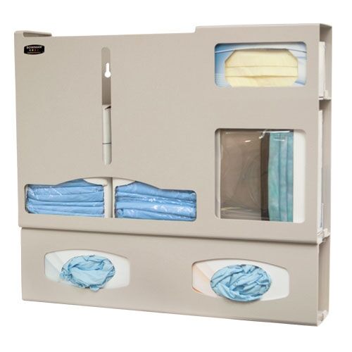 Holds a variety of gowns, two boxes of gloves, one box of earloop face masks, and one box of shield style face masks