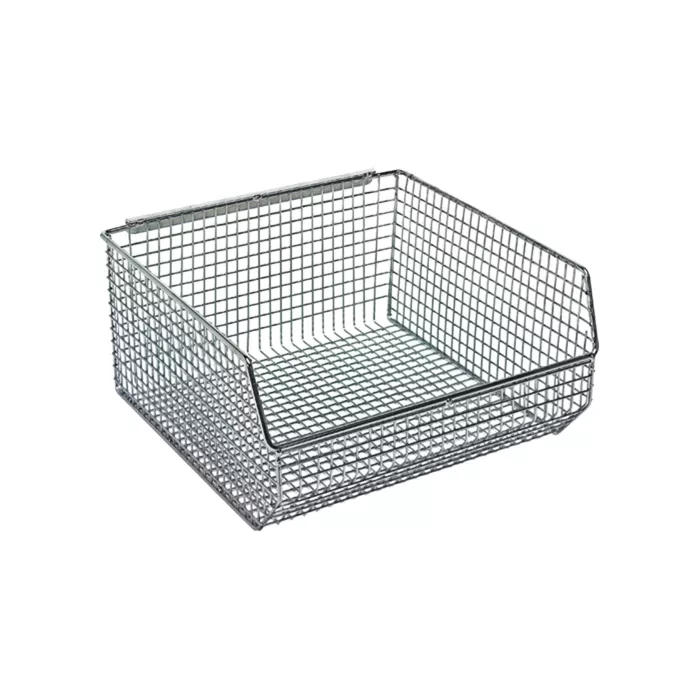 - Wire mesh bin offers instant visibility