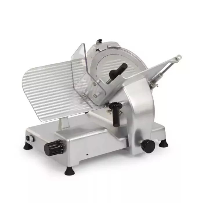 Professional slicer studied to cut big cold-cuts, cheeses, bread and fish. The line studied even in the least details with big roundness and without any edge allows a simple and complete cleaning guaranteed also by the system BLC, block of the sliding carriage, which allows to disassemble the food tray and its bearing and to obtain in this way an easy access even in the part under the food tray; in this case, a special safety mechanism allows to disassemble it only when the bulkhead of slice regulation is in position “0” so that the blade is completely protected.