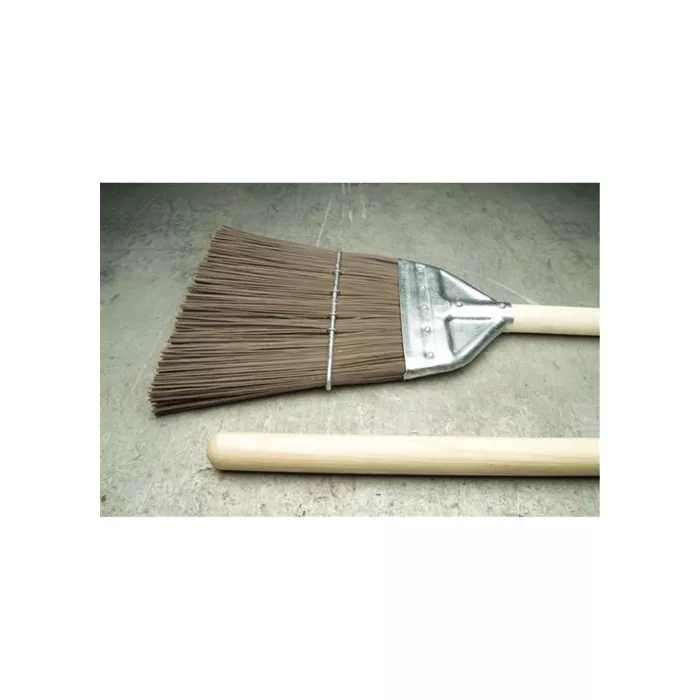 - Upright broom with stiff synthetic fibers for heavy-duty sweeping