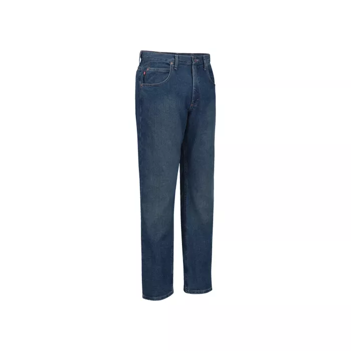 - Proprietary stretch denim engineered to maintain stretch and recovery throughout industrial launderings
