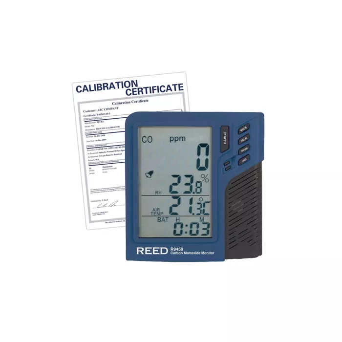 - Includes: Includes: Desktop Carbon Monoxide (CO) monitor with temperature & humidity, Batteries, ISO Certificate with full Data and Uncertainties