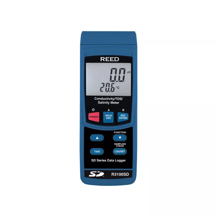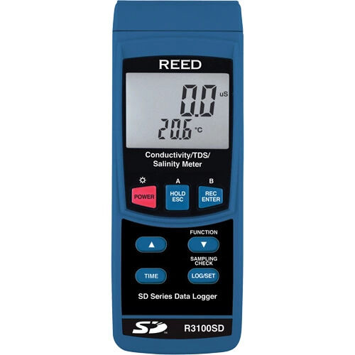 - Measures conductivity, total dissolved solids (TDS) and salt levels in water