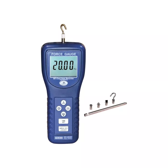 - Provides readings of tension (push) or compression (pull) in kg, lb. oz. and Newton units