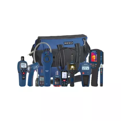 - Includes: Infrared Thermometer (R2300), Receptacle Tester (R5210), Dual Moisture Meter (R6018), Non-Contact Voltage Detector (R5110), Temperature & Humidity Meter (R1910), Combustible Gas Leak Detector (R9300), Laser Distance Measurer (R8005), Thermal Imaging Camera (R2160), Video Inspection Camera (R8500), Carbon Monoxide Detector (R9400), Industrial Tool Bag (R9999)