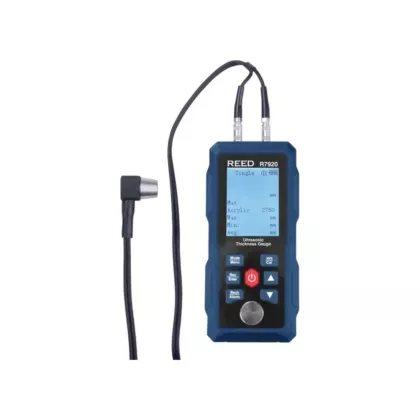 - Uses high-frequency sound waves to determine the thickness of a material by measuring the time it takes for the sound waves to travel from the gauge to the material and back