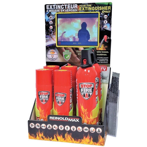 - Includes the carton display and 2 x 500ml, 1 x 750ml extinguishers