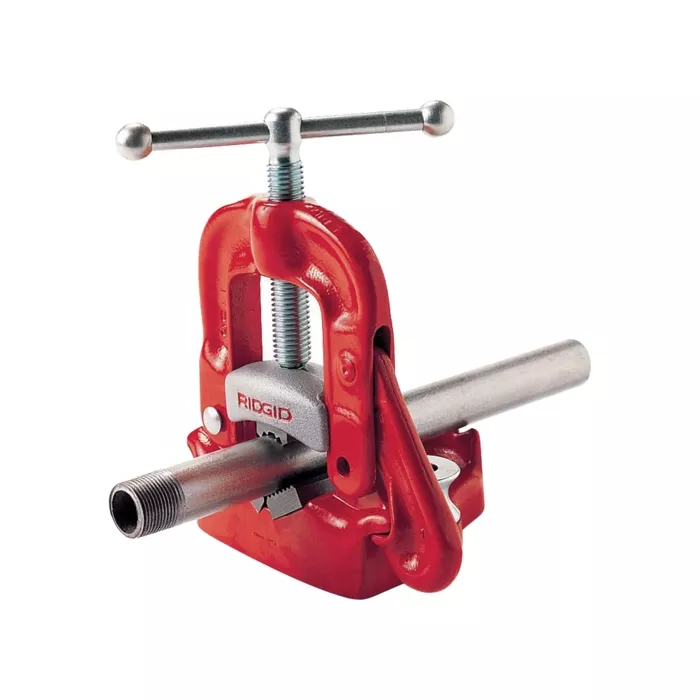 - Hardened alloy steel jaws and convenient pipe rest and bender included.