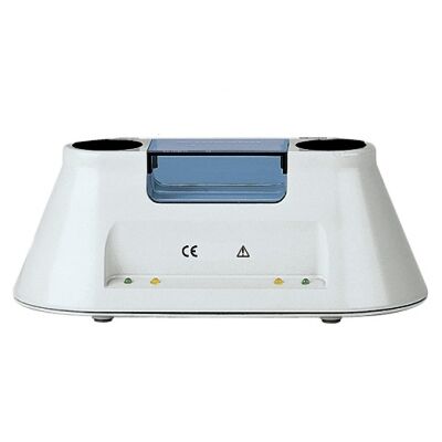 Charging Base (120V) for Rechargeable Li-ion (Lithium-ion) Battery Handles (C/ AA). Table or Wall Model with Storage Container for (2) Replacement Lamps or Ear Specula and Charging Status Displayed on Base, Riester ri-charger® L