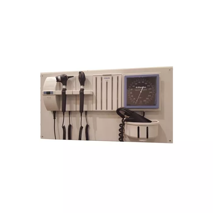 Includes: Wall transformer with 2 handles, Eliteview LED otoscope, Xenon L2 opthalmoscope, Specula dispenser, Big ben aneroid, and grey wall board