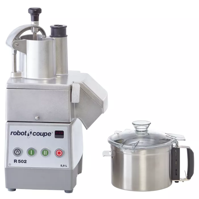 5.5 qt. stainless steel cutter bowl with handle, and high resistance smooth blade assembly.