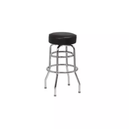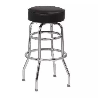- Black Standard Seat Bar Stool, Double Ring Chrome Frame, 2 Assembled
