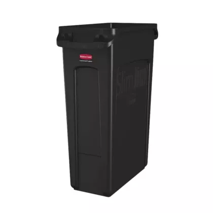 The Vented Slim Jim waste receptacle is designed for superior durability and maximum efficiency. Crafted to make waste management compliance easier and reduce strain on workers. Constructed of high-quality, commercial-grade materials, these trash cans feature 4 venting channels that make removing garbage bags up to 60% easier than traditional straight wall receptacles. By allowing air to flow into the can, liners can be pulled more easily from the garbage can which reduces strain on staff and increases efficiency. 4 bag cinches around the rib-strengthened reinforced rim create quick, knot-free liner changes. Sturdy handles and molded base grips make transporting and emptying contents more ergonomic while the step design prevents jamming when containers are nested.